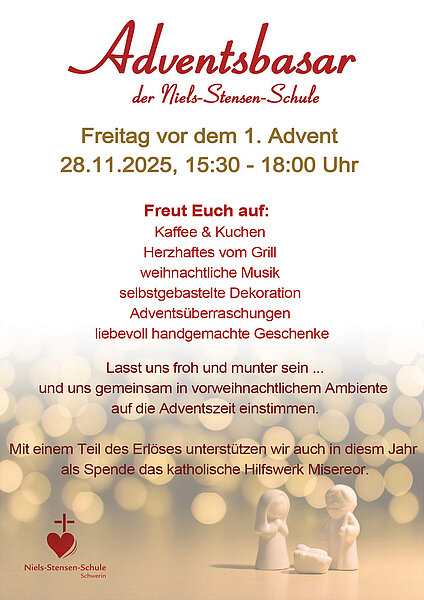 voller Vorfreude warten wir auf den diesjährigen Adventsbasar, welcher am 28.11. von 15:30 Uhr bis 18:00 Uhr stattfinden wird, und wir möchte Sie hiermit alle herzlich dazu einladen.