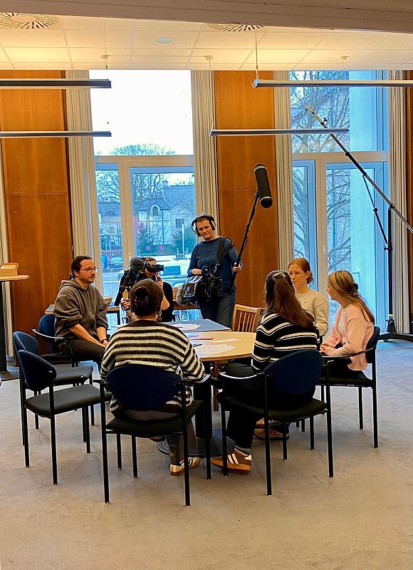 Mit professioneller Begleitung haben die Siegerteams nun kleine Hörspiele produziert. Einer der Landessieger wurde dabei von Schauspieler Merlin Sandmeyer gecoacht. Hierfür wählte die Jury die Niels-Stensen-Schule aus Schwerin aus. "Unter den vielen starken Einreichungen hat uns das Reel IRRWEGE besonders überzeugt", so die Jury. "Das Video bleibt dem Geist des Lenz-Hörspiels 'Das Labyrinth' von 1967 treu und führt die zentralen Motive in einem neuen Setting fort. Durch den Bezug auf das Phänomen der 'Tradwives' greift es aktuelle Debatten um eine neue Sehnsucht nach patriarchalen Rollenbildern auf. Gleichzeitig werden die Möglichkeiten des Reel-Formats genutzt - etwa, indem das Video loopfähig ist. Auch die Musik ist präzise und wirkungsvoll eingesetzt.“