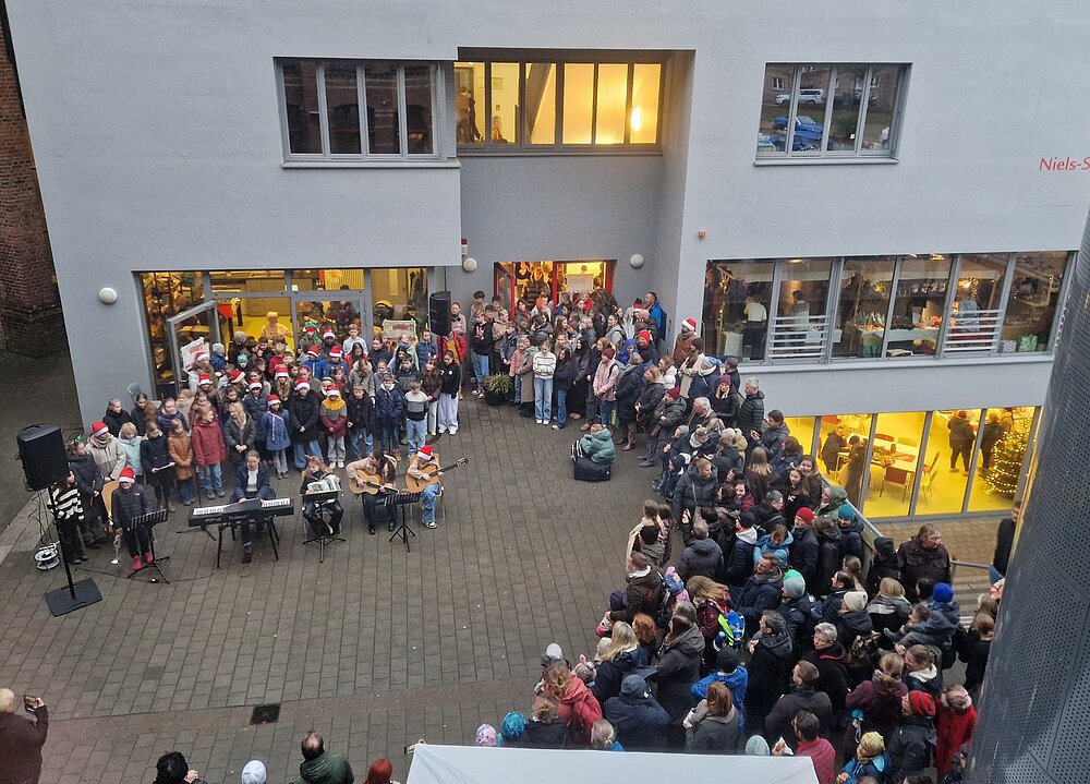 Beim Adventsbasar der Niels-Stensen Schule präsentierten die Klassen 1 bis 12 am 28.12.2025 ein buntes Angebot aus selbst Georgbaren, Gebasteltem, Gebackenem, Gestricktem, Gebratenem oder Gefaltetem.