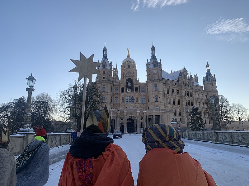 In drei Gruppen waren am 7. Januar Schüler*innen der Niels-Stensen-Schule in Schwerin unterwegs und brachten den Segen Gottes für das Jahr 2026 u.a. in den Landtag, zur Montessori-Schule und die Bernostiftung.