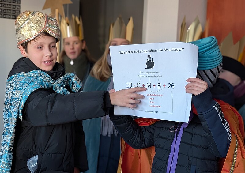 Mit Liedern, Gebeten und dem Segensspruch „Christus mansionem benedicat“ wünschten die Kinder den Mitarbeitenden ein gesegnetes neues Jahr, machten mit ihrem Engagement auf die Lebenssituation benachteiligter Gleichaltriger weltweit aufmerksam und sammelten Spenden für Hilfsprojekte.
