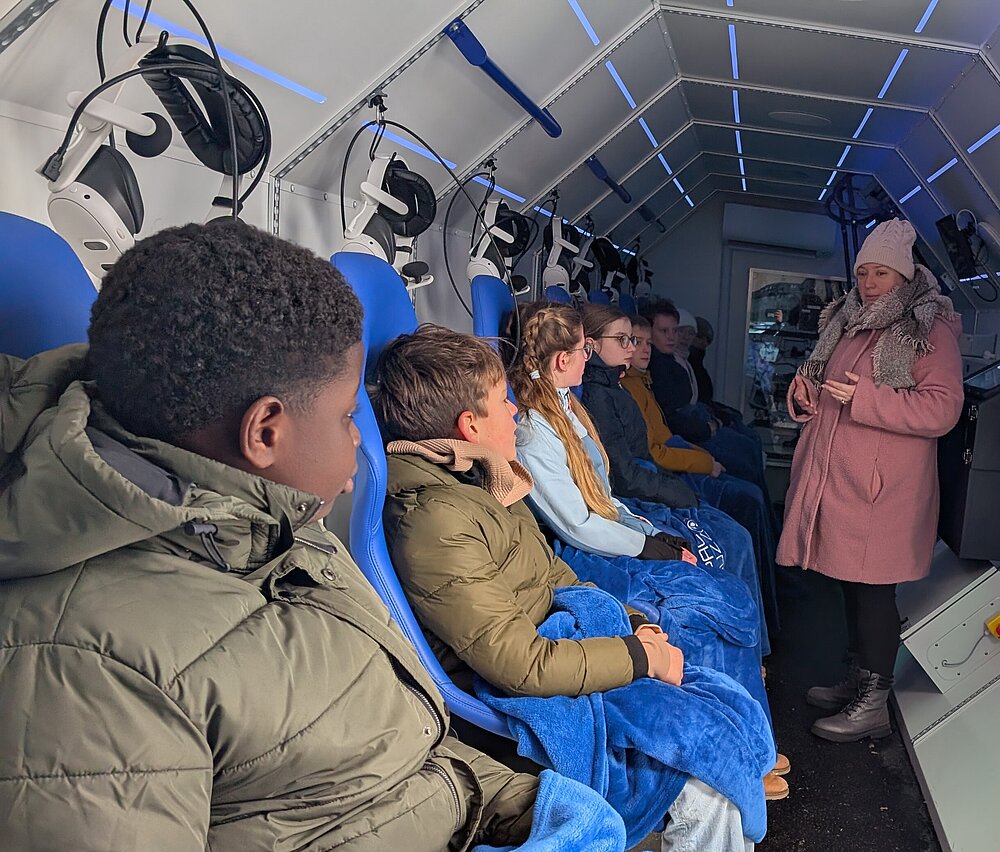 Kurz vor den Ferien durften die Schülerinnen und Schüler der Niels-Stensen-Schule ihren Klassenraum gegen eine Rakete eintauschen. Mit einer VR-Brille begaben sich die Schüler*innen gestern auf einen virtuellen 15-minütigen Raumflug mit den ESA-Astronauten Matthias Maurer und Alexander Gerst.