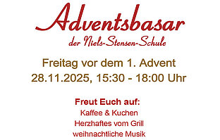 Liebe Schüler*innen, liebe Eltern und liebes Kollegium der Schule, voller Vorfreude warten wir auf den diesjährigen Adventsbasar, welcher am 28.11.… mehr...